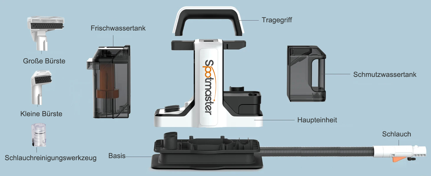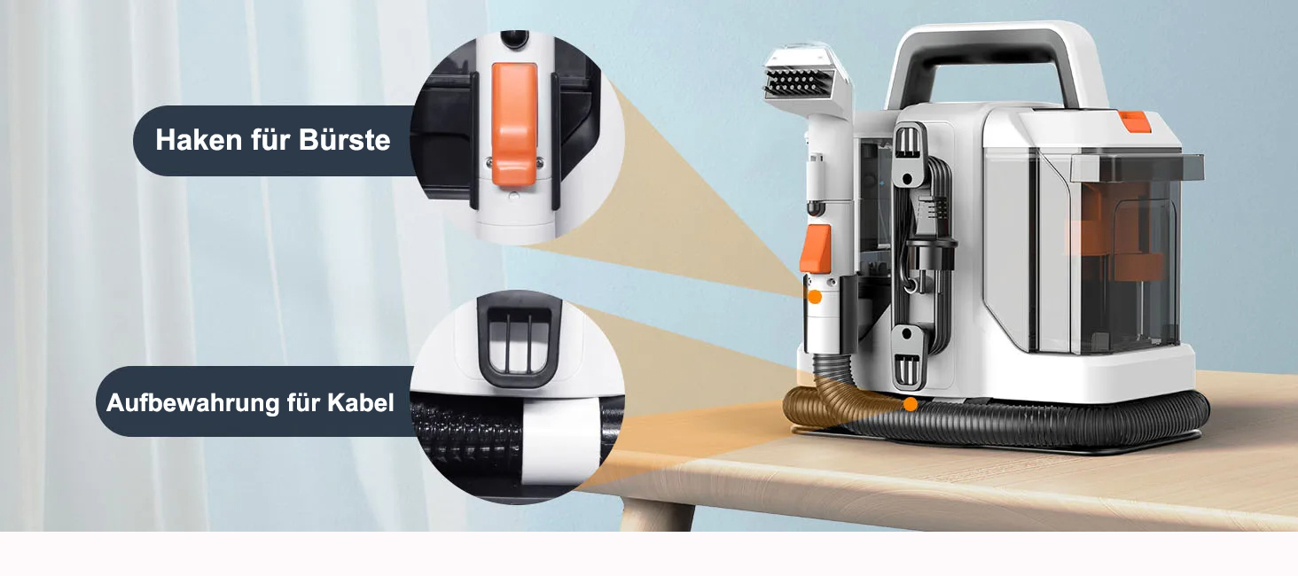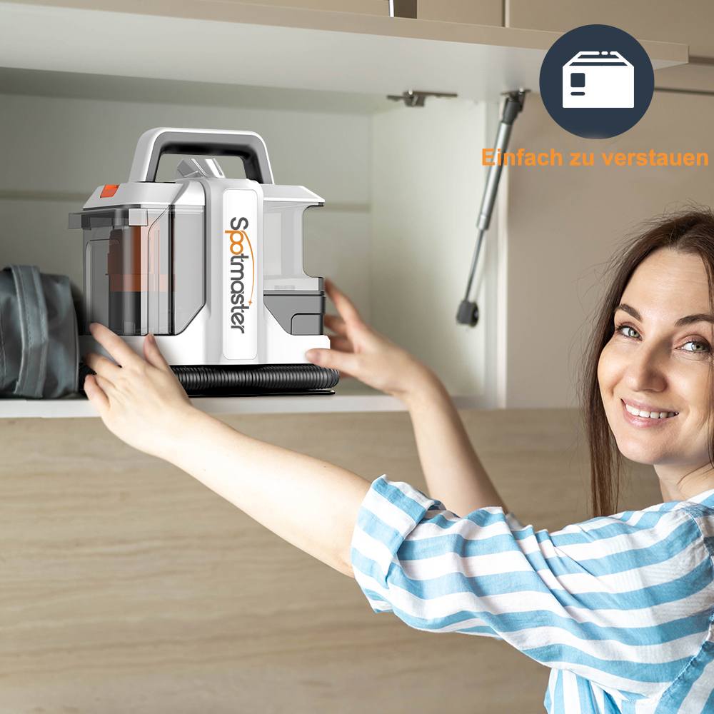Kompakte und durchdachte Bauweise – leicht zu tragen und zu verstauen. Ideal zur Reinigung verschiedenster Textiloberflächen wie Teppiche, Sofas, Autositze und Vorhänge. Das benutzerfreundliche Design sorgt für eine einfache Handhabung und eignet sich besonders gut zur schnellen Entfernung unterschiedlichster Flecken. Ob zu Hause oder unterwegs im Auto oder Wohnmobil – es ist die perfekte Wahl.