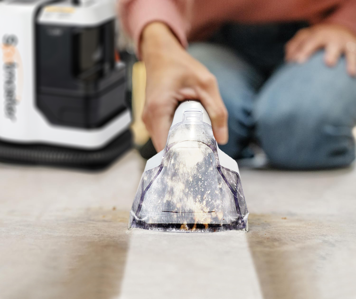 Der Spotmaster Teppichreiniger ist mit einer schmalen Bürste ausgestattet, die tief in die Fasern von Teppichen und Textilien eindringen kann. So werden selbst tiefsitzende und hartnäckige Verschmutzungen effektiv entfernt und die Reinigungsleistung deutlich verbessert. Die schmale Bürste ist flexibel und handlich, ideal für die Reinigung von engen Bereichen und schwer zugänglichen Ecken – für eine rundum gründliche Reinigung. Gleichzeitig wurde die Bürste so entwickelt, dass sie Teppiche und Textilien schont, den Faserabrieb minimiert und die Lebensdauer von Teppichen und Textilien verlängert.